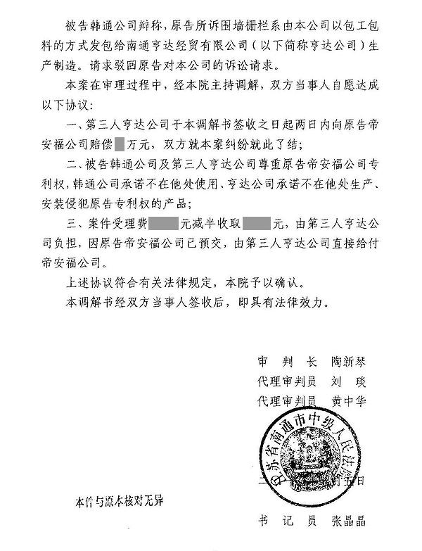 民事調(diào)解(無錫帝安福Vs韓通船舶、南通亨達(dá))