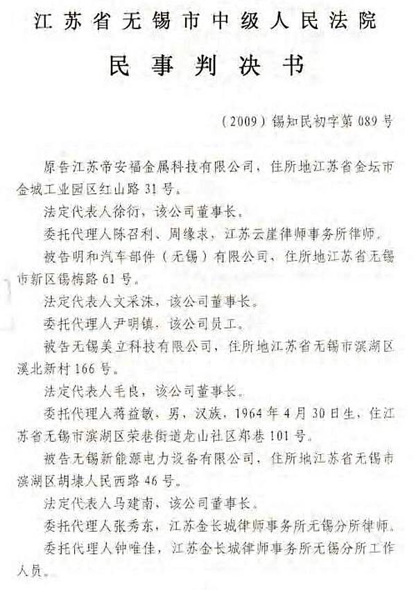 無錫帝安福VS明和、新能源判決書