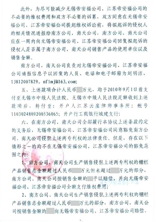 無錫帝安福VS南方(調(diào)解書)